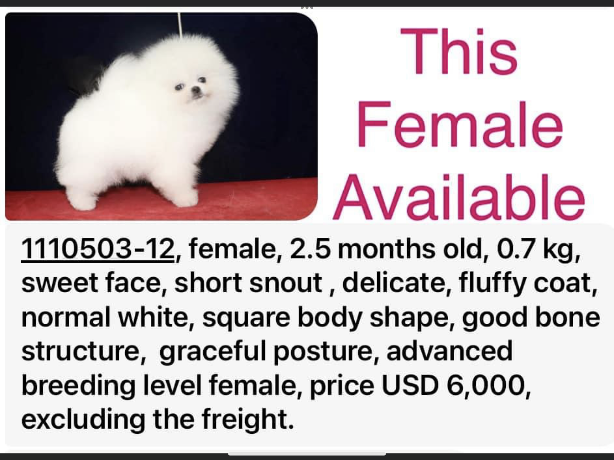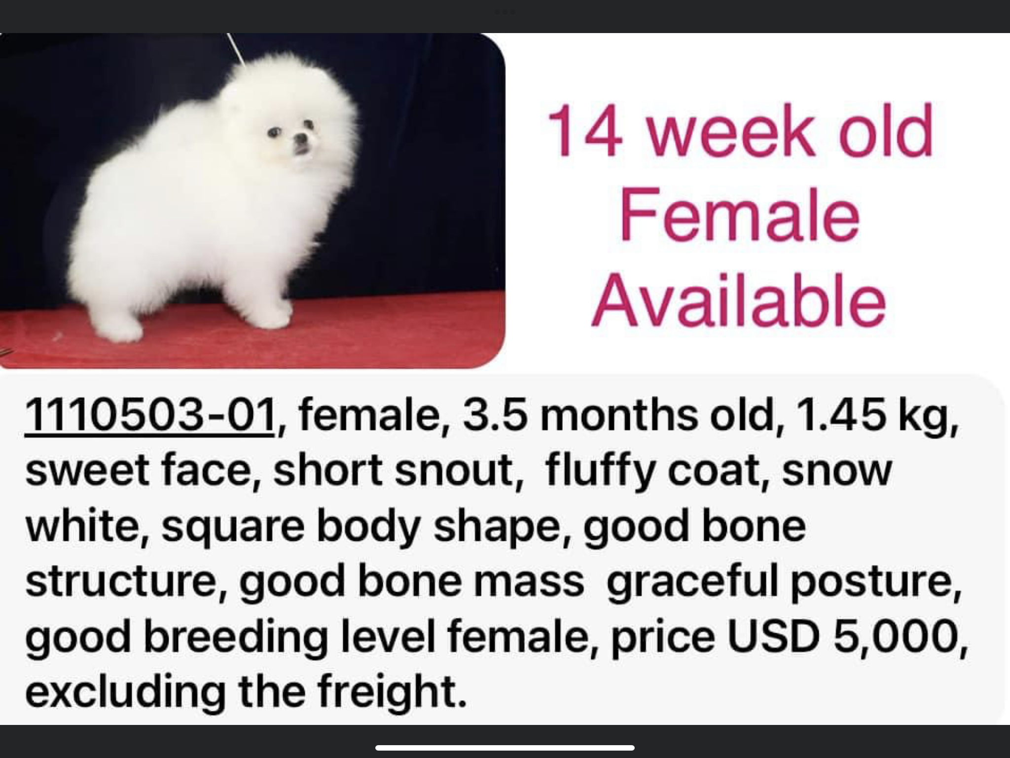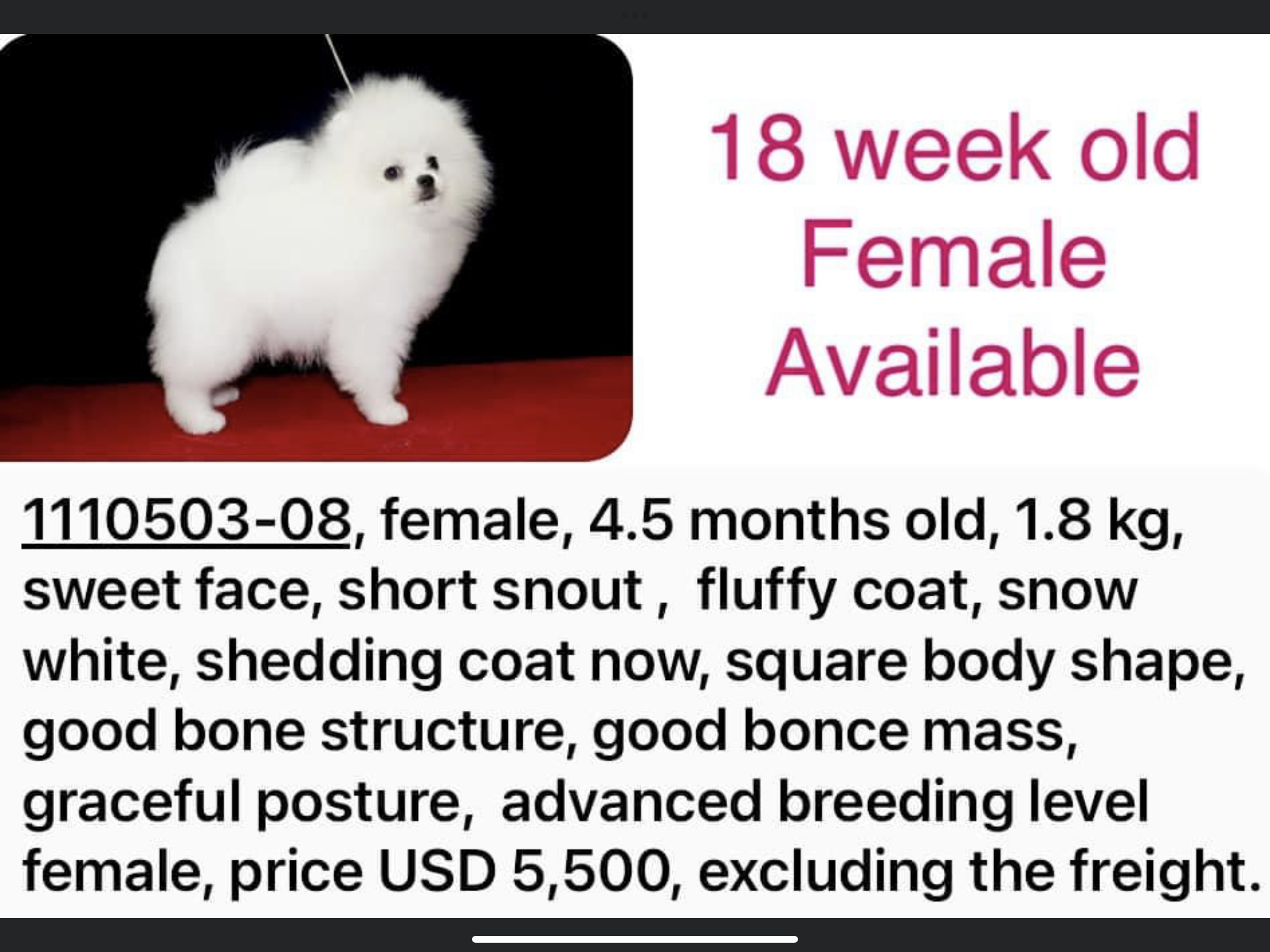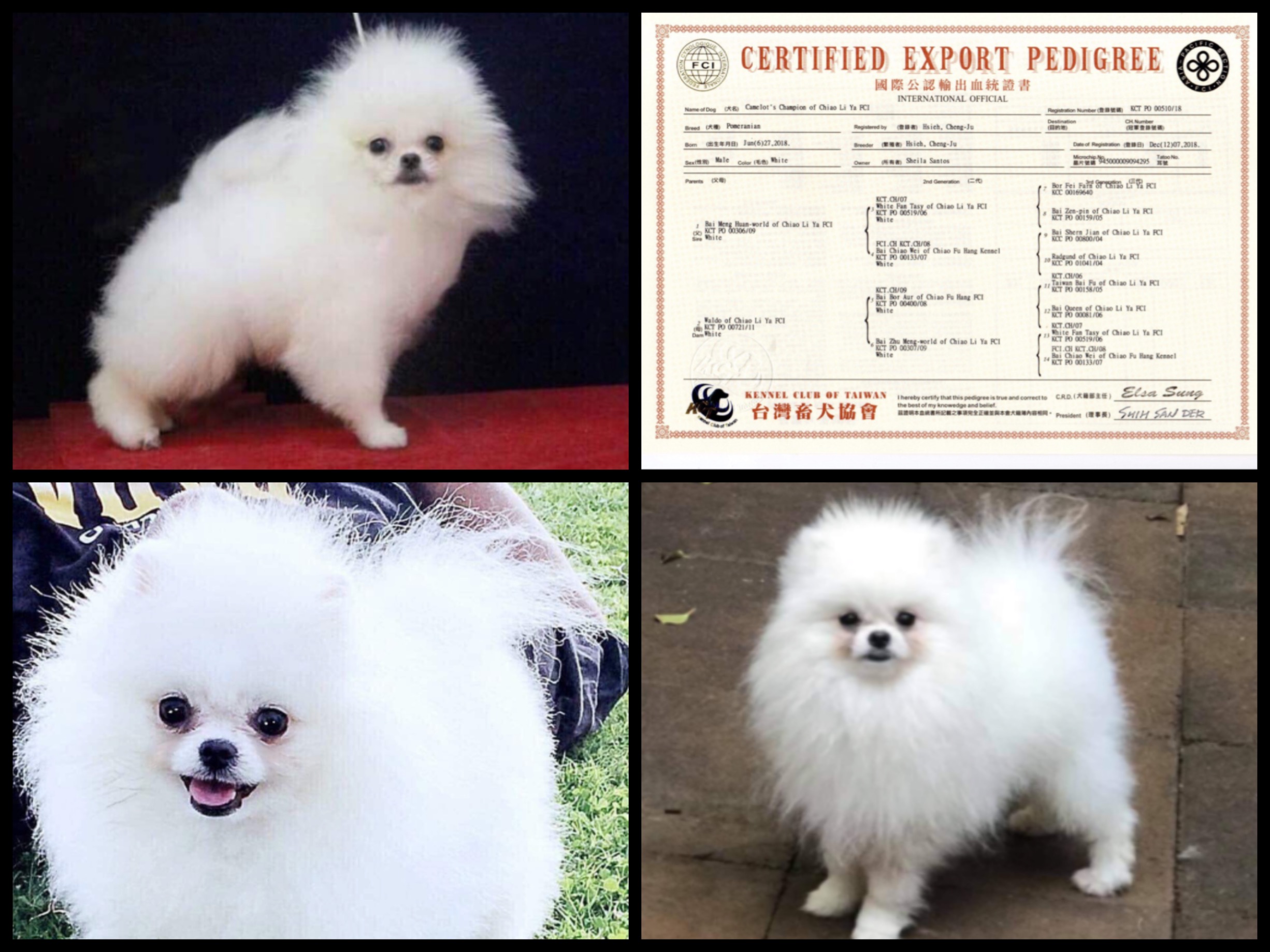 Over the years I have imported many white Pomeranians from the WORLD FAMOUS CHIAO LI YA KENNEL, to improve the white Pomeranians here in the United States
