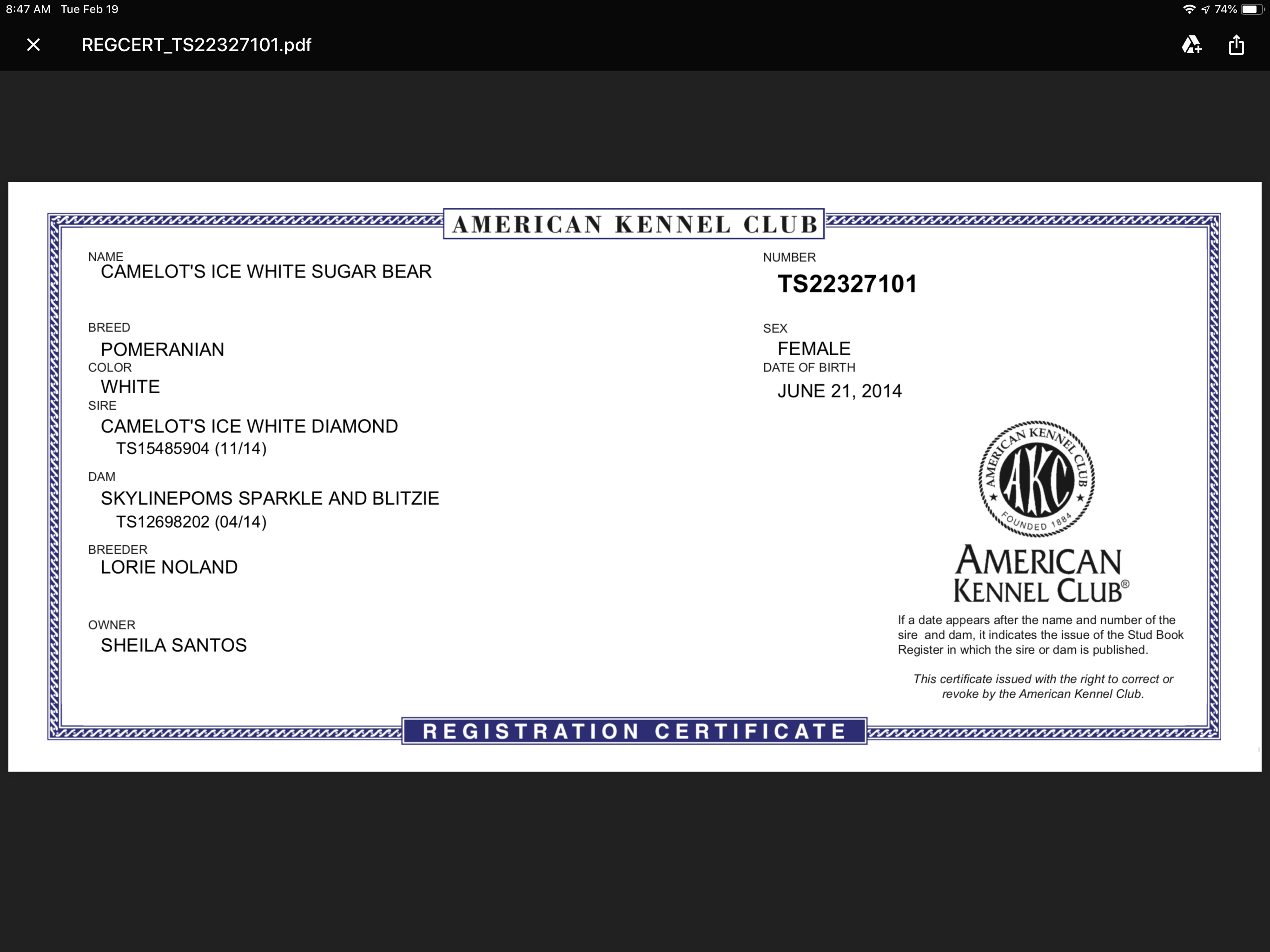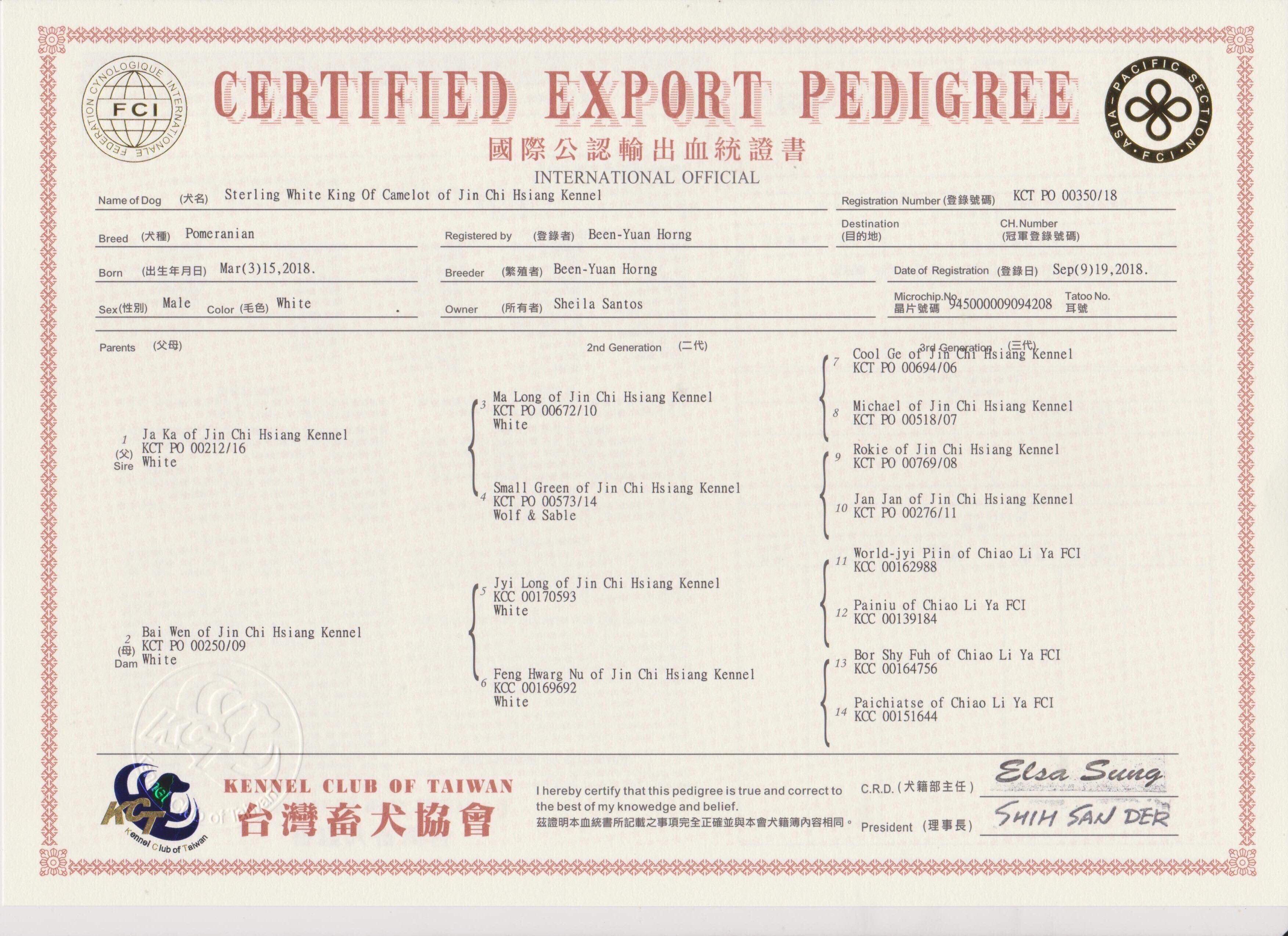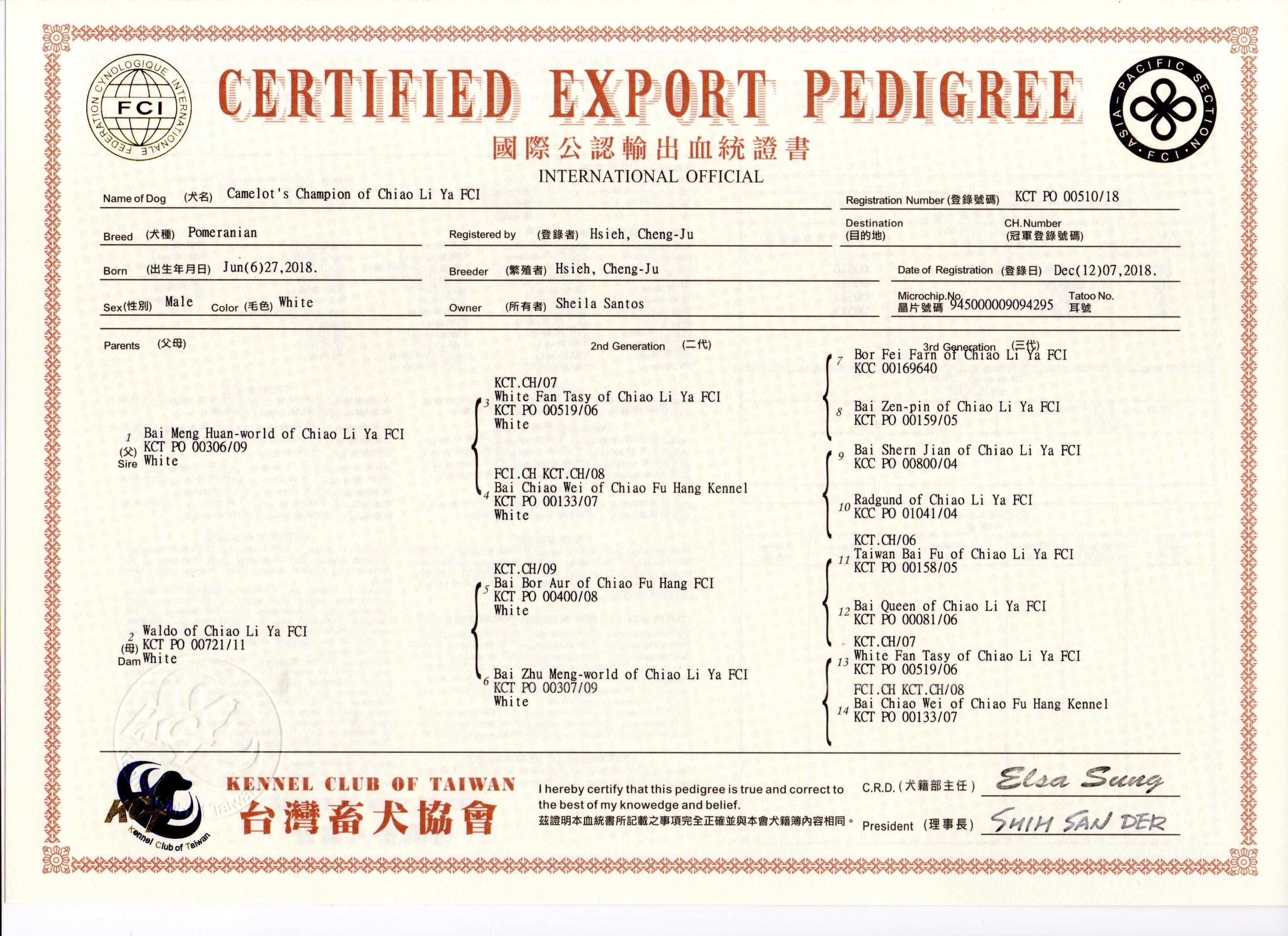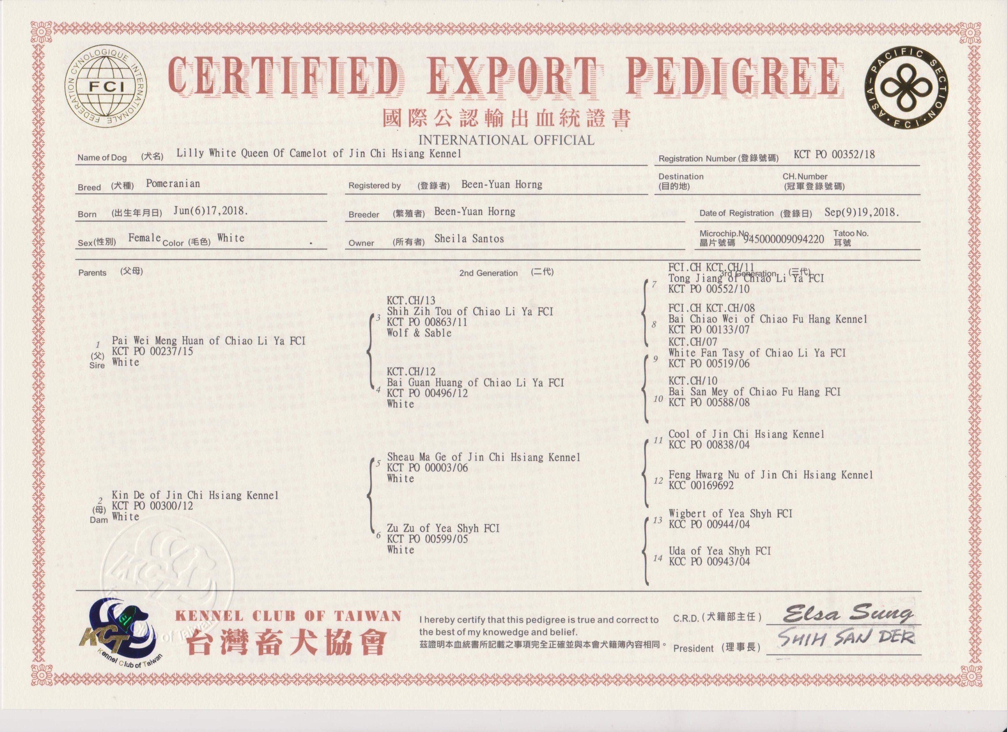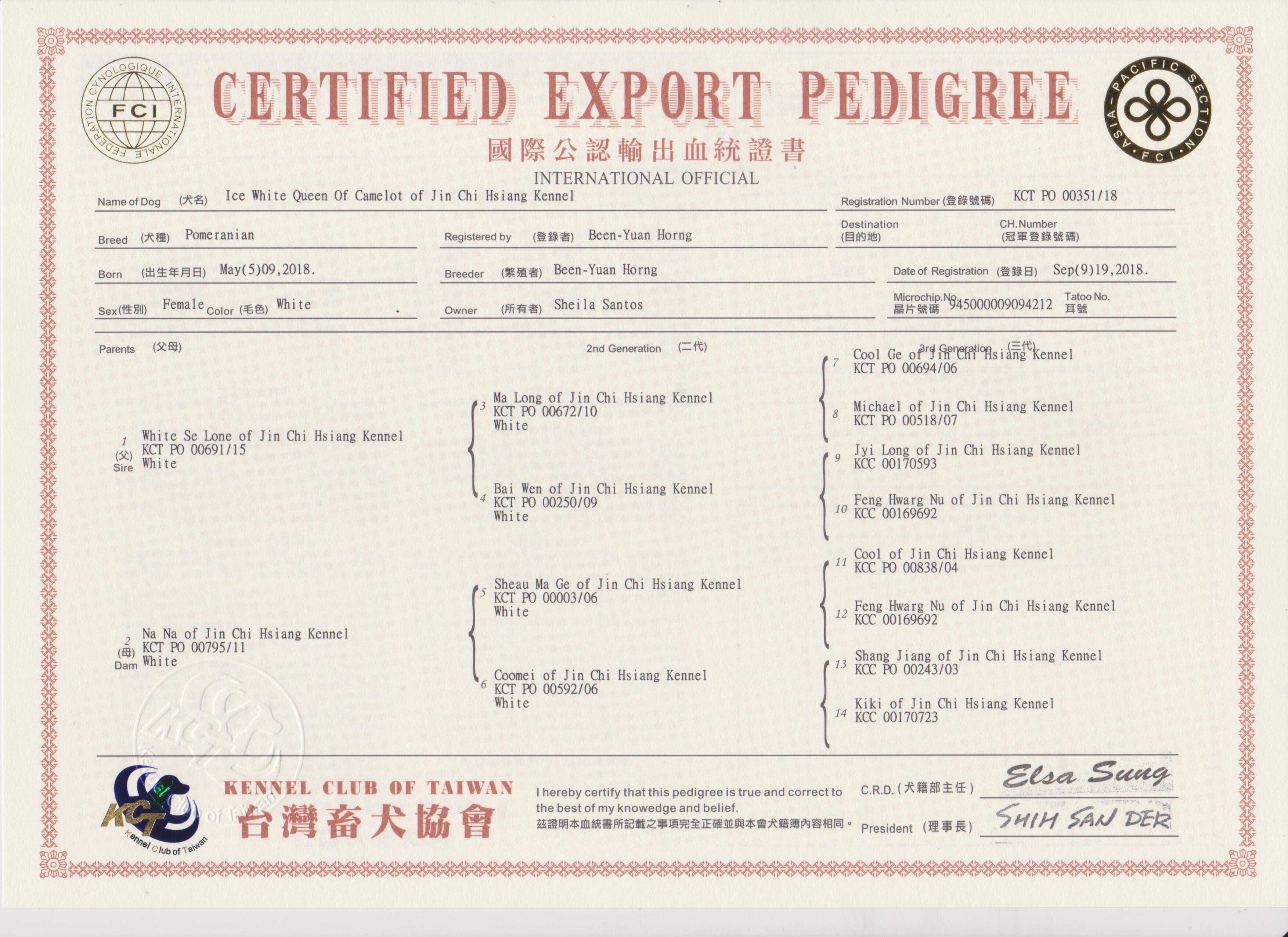Over the years I have imported many white Pomeranians from the WORLD FAMOUS CHIAO LI YA KENNEL, to improve the white Pomeranians here in the United States