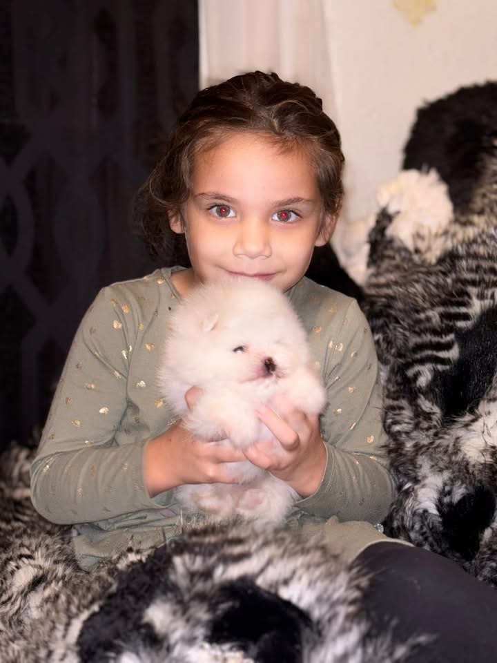 ABOVE IS BARKLEY WHEN HE WAS ONLY 4 MONTHS OLD ….IF YOU LOOK VERY CLOSELY YOU CAN SEE A TINY SPEC OF BLUE IN HIS RIGHT EYE, ! This adorable TINY BOY is ultra rare , because he is not only ICEWHITE but he has BLUE in one of his EYES !! no matter where you look in the world it’s very unlikely you will find a QUALITY , true BLUE EYED ICE WHITE Pomeranian with champion lines , a three-year health guarantee, a color guarantee, a size guarantee A BEAUTIFUL FACE and a genetic panel provided. Barkley has perfect black pigment and one of his eyes is partially blue HE WILL BE AVAILABLE FOR SALE FOR $7,000 WITH A 100% REPLACEMENT GUARANTEE IF YOU ARE NOT 110% HAPPY WITH