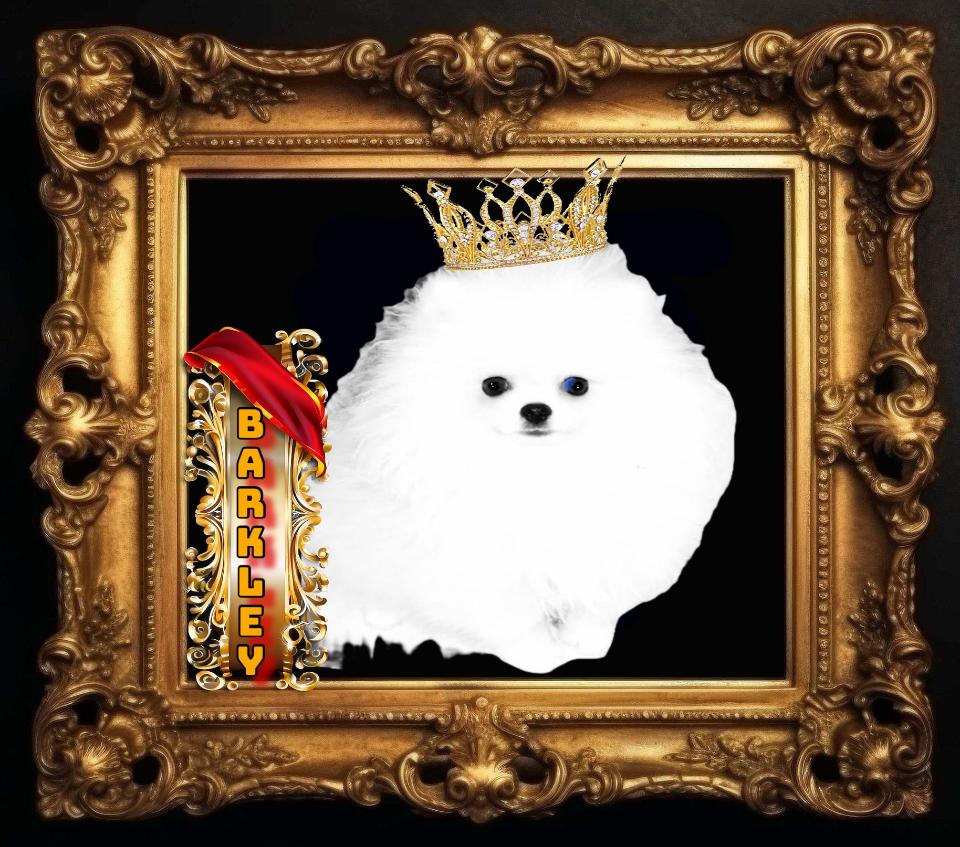 ABOVE IS BARKLEY WHEN HE WAS ONLY 5 MONTHS OLD ….IF YOU LOOK VERY CLOSELY YOU CAN SEE A TINY SPEC OF BLUE IN HIS RIGHT EYE, ! This adorable TINY BOY is ultra rare , because he is not only ICEWHITE but he has BLUE in one of his EYES !! no matter where you look in the world it’s very unlikely you will find a QUALITY , true BLUE EYED ICE WHITE Pomeranian with champion lines , a three-year health guarantee, a color guarantee, a size guarantee A BEAUTIFUL FACE and a genetic panel provided. Barkley has perfect black pigment and one of his eyes is partially blue . Barkley will arrive in his Louis Vuitton airline, approved pet carrier with a matching collar and leash, as well as a deluxe PUPPY package and his AKC registration papers as well as his necessary paperwork for him to fly in the cabin to his new home