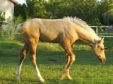 Frosty is a Palomino with one Creme Gene . I purchased her from a Rancher in Texas . The baby above turned out to have just one Creme Gene a Palomino (ee, CCcr ) She was a pretty Palomino ! Frosty later gave birth to a Palomino colt shown below: He is also a Palomino (ee, CCcr )