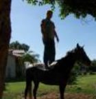 I took this picture of him the first time a saddle was put on his bach . He reared up and it was "A Kodack moment "
