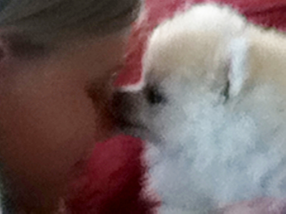 HER FIRST LITTER WAS BORN 6/13/2011..she had one ice white female one tiny creamy white tiny boy Ziggy and one beautiful soft white boy Dinky