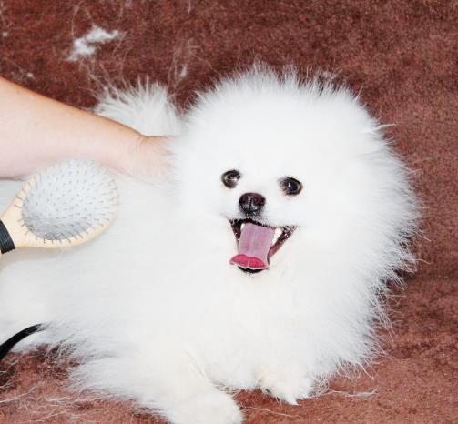 ...................Poms are born with wonderfully fluffy coats of fur; this is one the features that makes this dog breed so amazingly special and unique. There is a brief interruption where the fur will fall out. THIS IS REFFERED TO AS THE PUPPY UGLIES. This is only temporary; once the adult coat comes in, you will have your ball of fluff back.