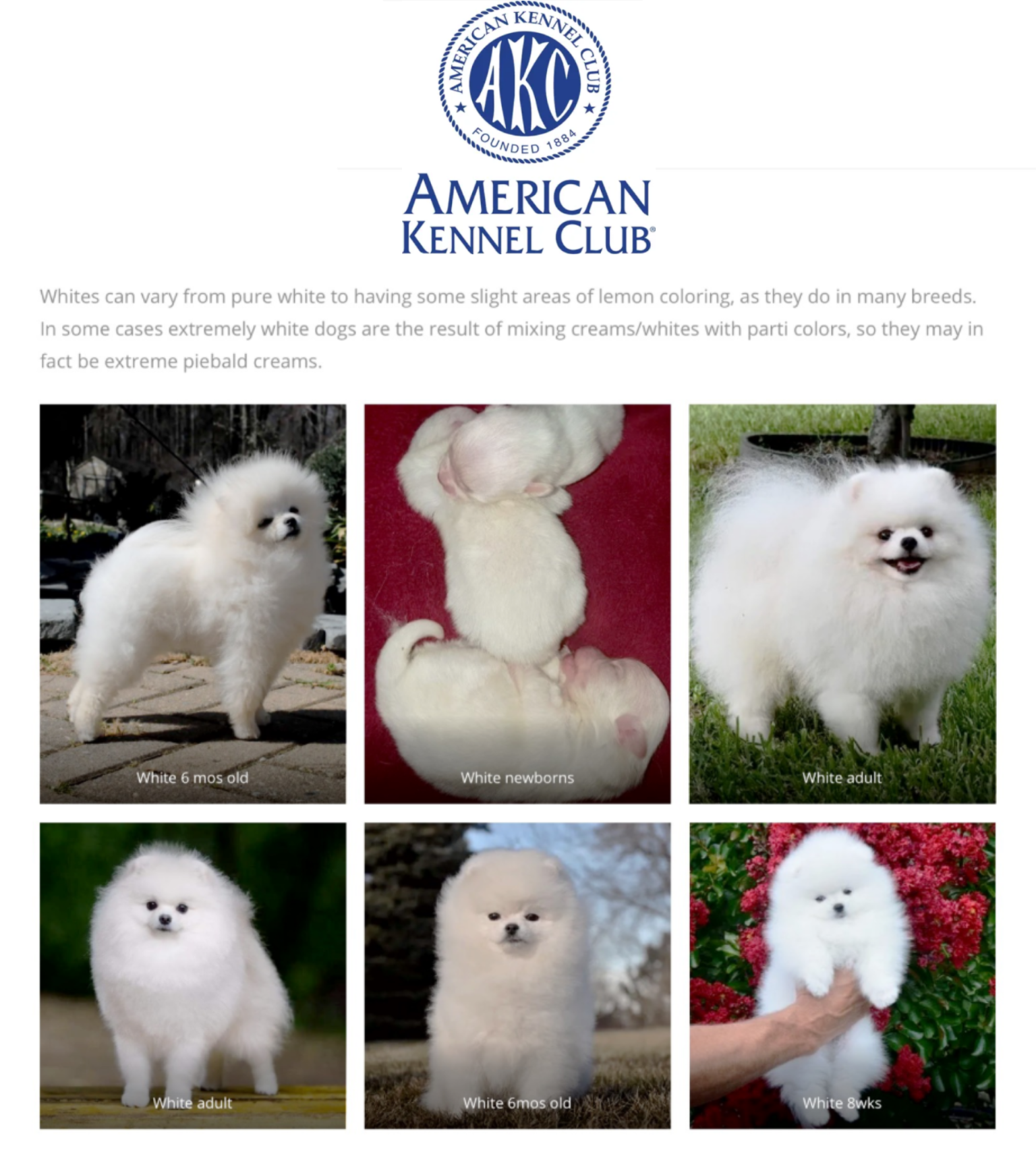 - cp, platinum, is optically similar to albino but retains very slight tysonase activity and in the mouse is described as retaining some luster in the coat as opposed to the pure white seen in albino. Although there is a total absense of proof one way or the other, I would hypothesize that the white Pomeranian , with pale blue eyes and pink nose, is due to a homologous gene.