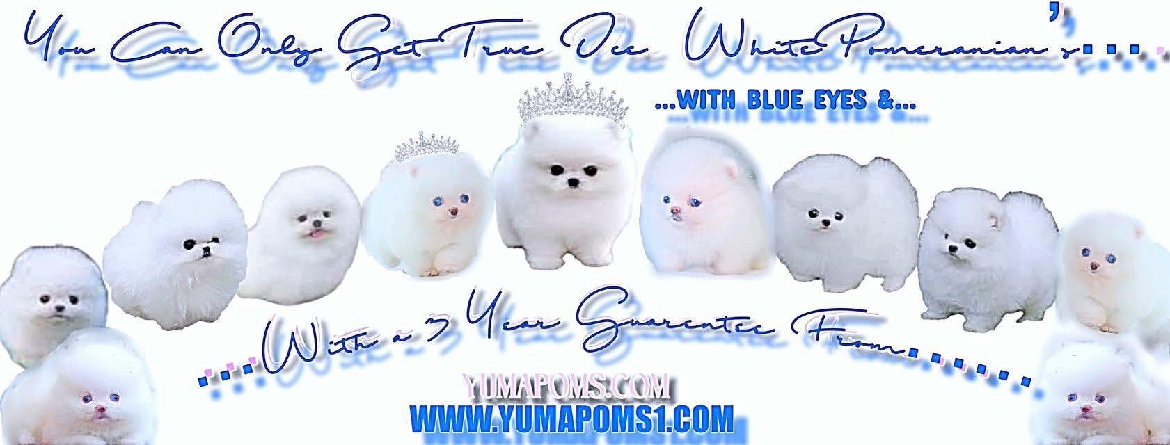 I have been Breeding white Pomeranians for 20 years and we have become so expert on it. We produce 100% white Pomeranians consistently 100% of the time . For years I have been working on the genetics Necessary to produce ice white Pomeranians with blue eyes